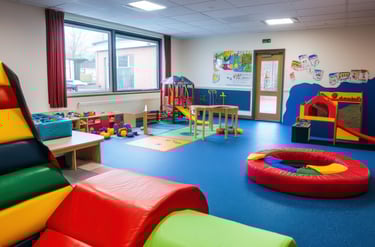 Supply and installation of rubber tiles for sports areas and play centers, featuring shock absorption and durability.